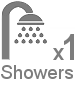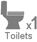 Bathroom: Large wet room with shower, pedal flush toilet and wash basin, including grip handles.