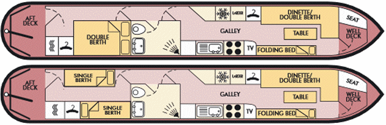 Cabins: One rear cabin which can either be configured as one double or two single beds. There is a small wardrobe for storing clothes.
